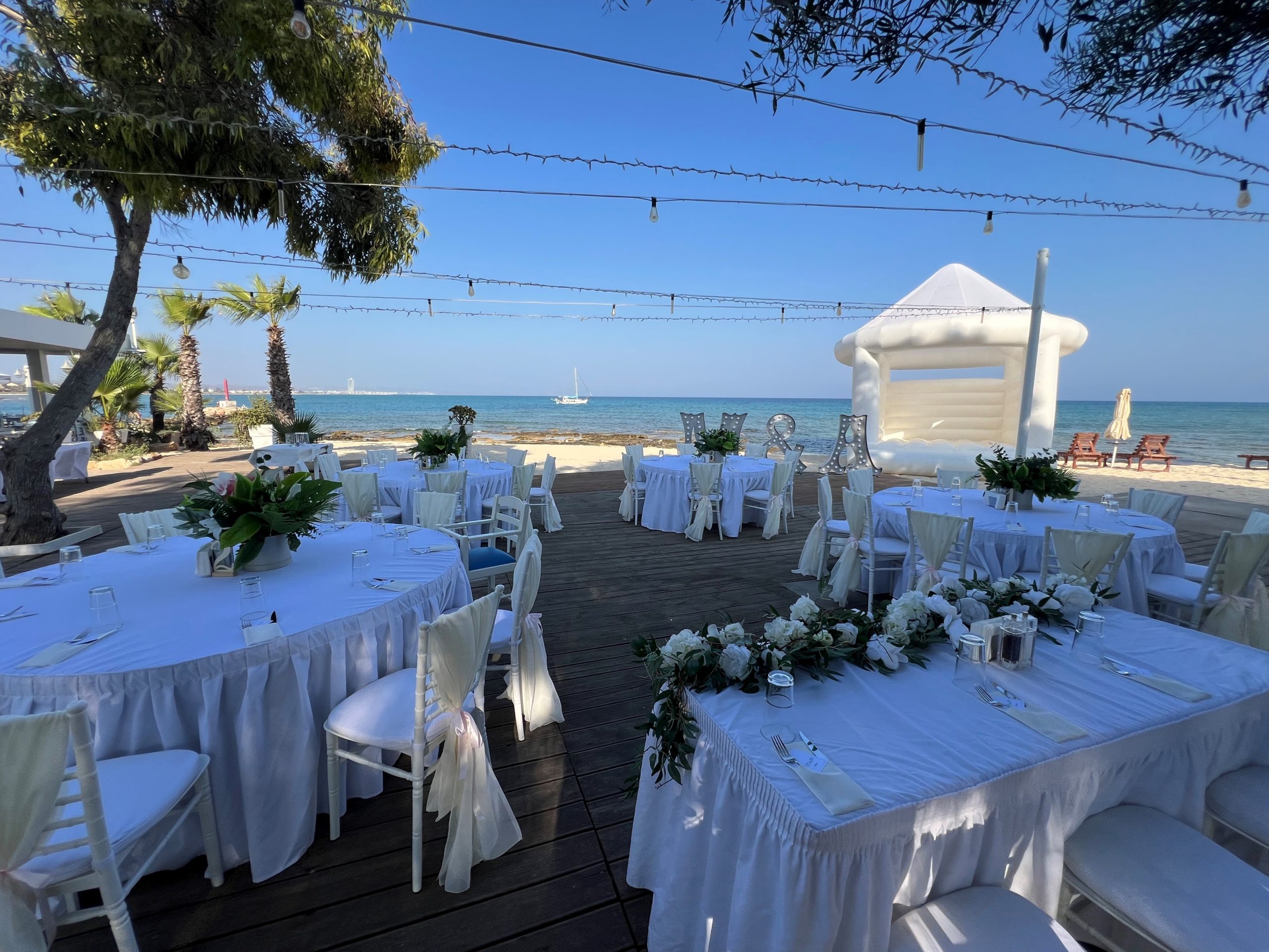 Set in a private area of the famous Demetrion Family Restaurant in Liopetri (10 mins from Ayia Napa), this amazing family run, rustic venue is perfect for those wanting both beach ceremony and reception all in one place (25 guests or more). You can get married with the white sand in your toes and clear blue seas for the view, then enjoy a beautiful dinner under the lights and stars set back on the decking area, with your own bar, toilets, changing room and waiters.
